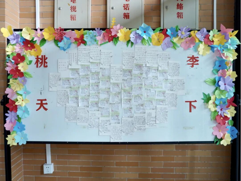 活动前,同学们在白板上贴上剪裁好的花朵,拼出漂亮的图案和边框,把写好的便利贴一张张贴上去,写下了对老师的祝福和感谢。一句句真挚的话语,将对老师的感恩与敬爱,凝于笔尖,化作最温暖的风景,让每一位路过的老师都能感受到这份来自学子的赤诚心意。