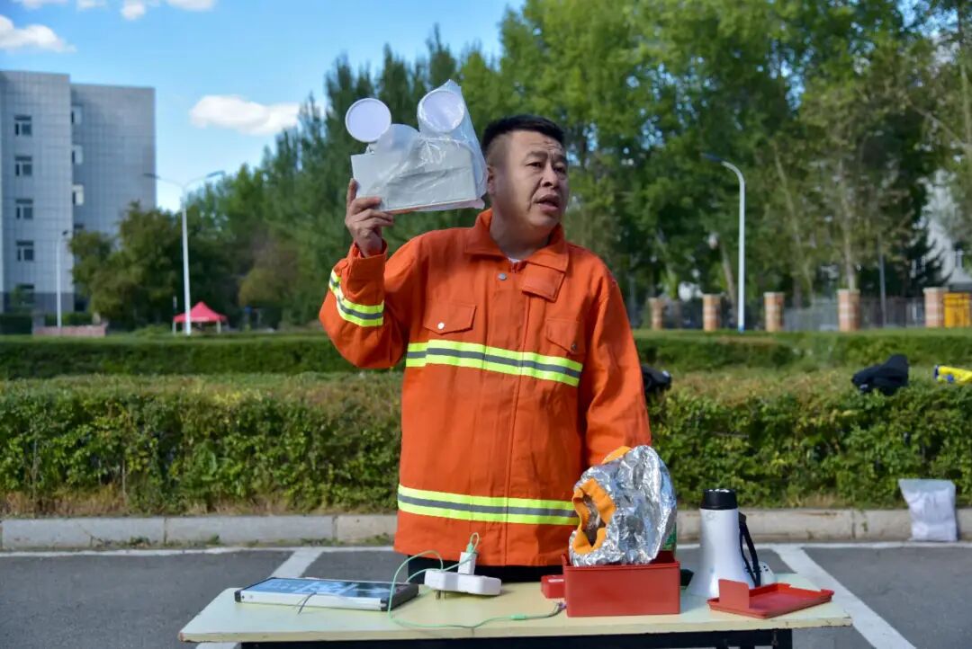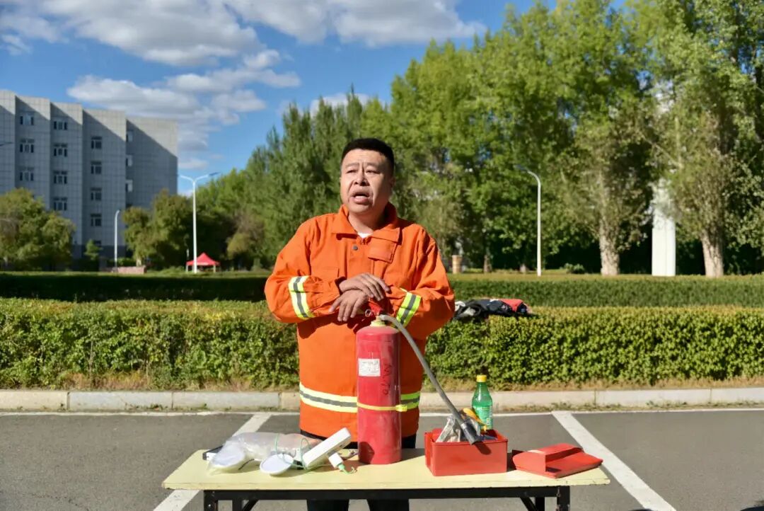 在活动中,园区消防部负责人韩经理首先结合近期高校宿舍、食堂火灾案例,剖析了违规使用大功率电器、乱扔未熄灭烟头、消防通道堆放杂物等隐患的危害。随后,他现场拿出灭火器等器材,现场演示操作:讲解灭火器“提、拔、握、压”四步法,再教大家如何将湿毛巾对折三次捂住口鼻、弯腰低姿前行的逃生要点。韩经理通俗的语言解读与互动式的问答交流,深度筑牢了同学们的安全防线,让大家深刻认识到日常防火的重要性和自救互救的关键性。