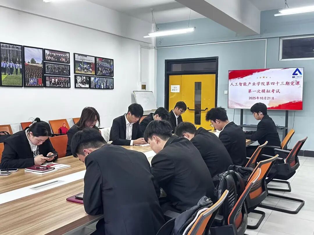 为夯实新一批党课学员的理论基础,切实检验培训成效,人工智能产业学院于2025年10月22日在学院301会议室组织开展第四十三期党课培训班第一次模拟考试,培训班全体学员参加此次考试。
