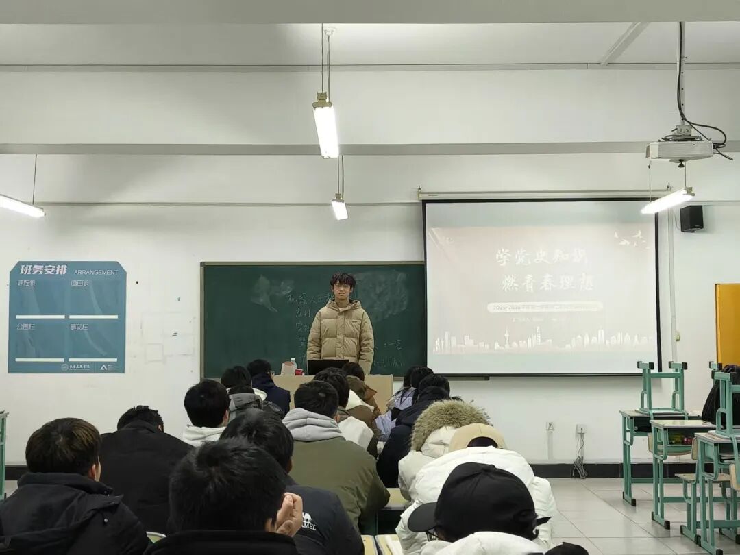为深入学习贯彻党的精神,传承红色基因,并激发青年学子的历史使命感与时代担当,长春建筑学院人工智能产业学院共青团思想引领中心于2025年11月18日精心策划并组织了一场以“学党史知识,燃青春理想”为主题的党史知识宣讲会。此次活动旨在将党史学习教育与青春理想紧密结合,引领同学们在历史的长河中汲取前行的智慧与力量。