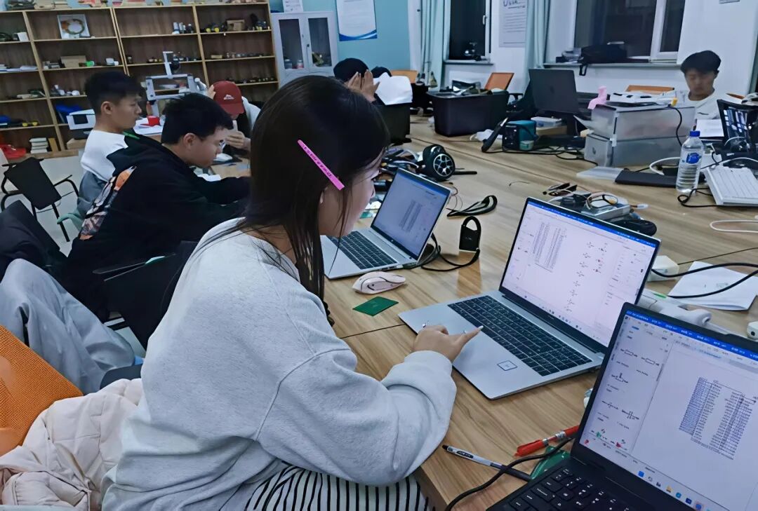 讲解过程中,柳清泉学长不仅详细拆解每个操作的关键细节,还同步带领成员们上手实操。从创建空白项目,到绘制出规整的原理图;从进行布线规划,到生成直观的PCB版图,后续还将指导大家完成PCB焊接与程序烧录,让“设计图纸”切实转化为可运行的硬件成果。