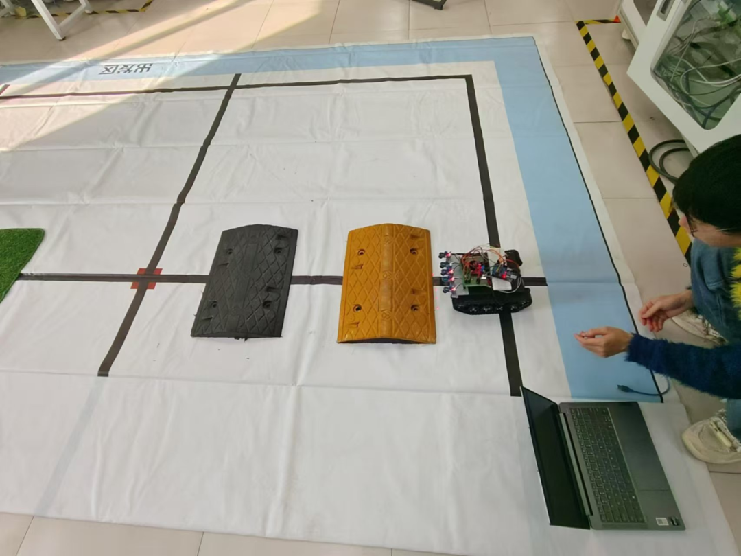 全地形机器人自主创新设计比赛赛前,刘伟老师带同学们分析赛道,指出复杂地形对小车性能的要求。社团成员在老师帮助下升级改造小车,刘老师讲解了动力、轮胎、编程等方面的要点。练习时小车挑战多种地形,同学们不断调整,老师总结经验、解决难题,为比赛铺路。