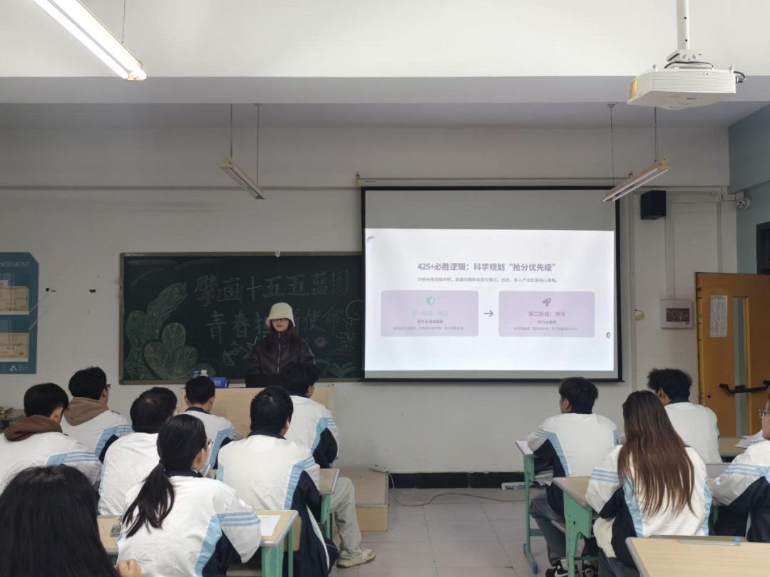 针对具体备考方法,学长学姐们进一步提出了可落地的学习方案,包括如何合理规划复习周期、设定阶段性目标,以及精准识别弱项并进行针对性训练。最后,他们分享了听力精听、阅读定位等高效解题技巧。整场内容层层递进,同学们纷纷表示思路大开,不仅对考试有了整体把握,更对后续复习增强了信心与方向。