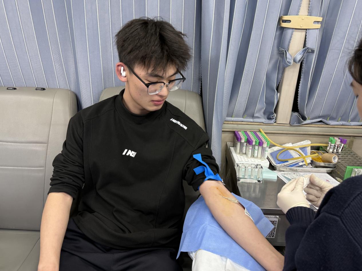 活动开始后,我院学子在工作人员的引导下,有序完成信息登记、血压测量、血液初筛等流程,他们认真聆听医护人员的讲解,了解献血注意事项,以饱满的热情配合完成采血工作。当温热的血液缓缓流入采血袋时,一张张年轻的脸上洋溢着自豪的笑容,同学们全程积极配合医护人员的指引,态度认真、秩序井然,用实际行动展现了当代青年的责任与担当。他们不惧采血过程中的紧张与不适,以真诚的热忱传递爱心,用青春热血书写了属于新时代大学生的温暖篇章。